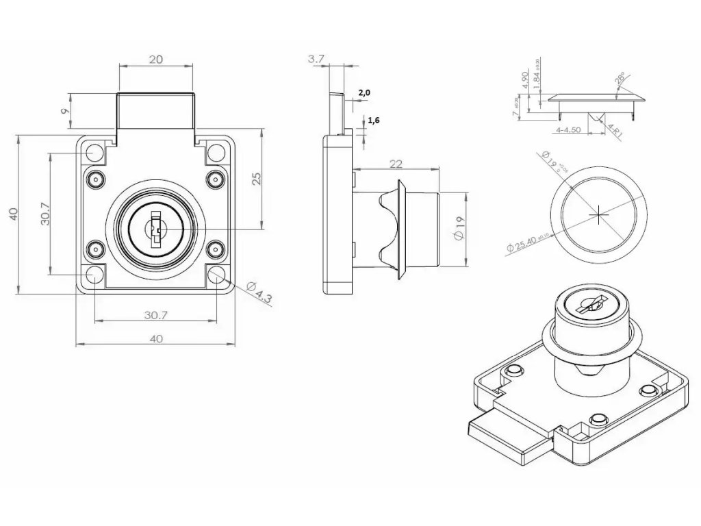 850/x spoločný kľúč D20 nábytkový zámok, nikel