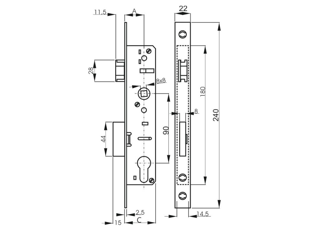 EUROPORTAL S50/90/22, zámok profilový nerez