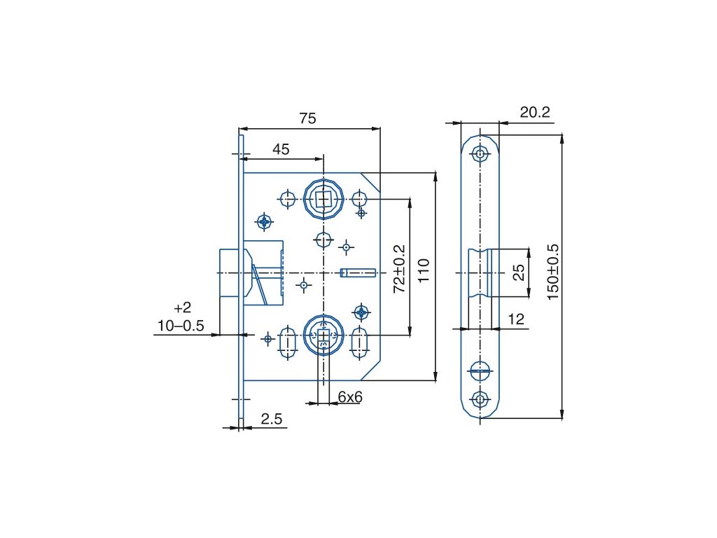 K 053 P-Ľ zámok WC 75/72, biely zinok ( 6x6)