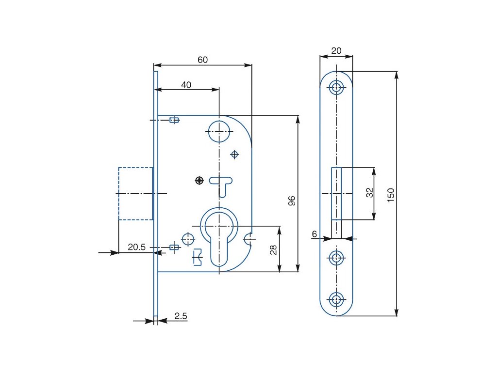 K 132 zámok vložkový závorový 60mm, biely zinok