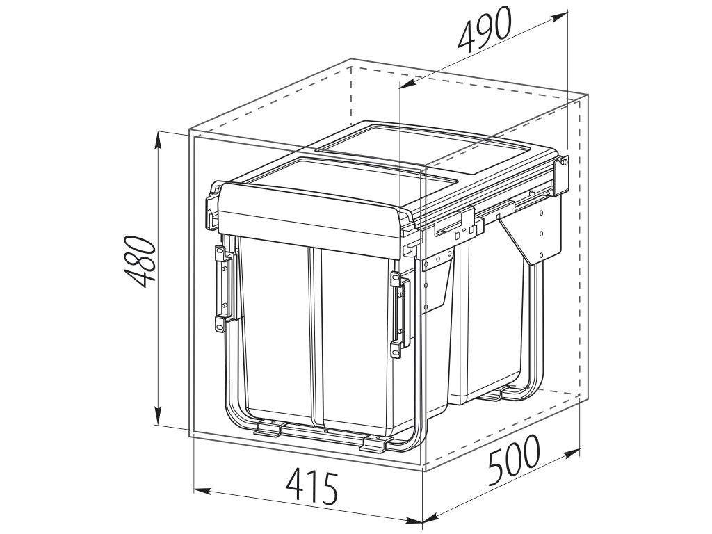 Kôš na odpadky 450mm antracit, 20L+2x10L montáž na čelo