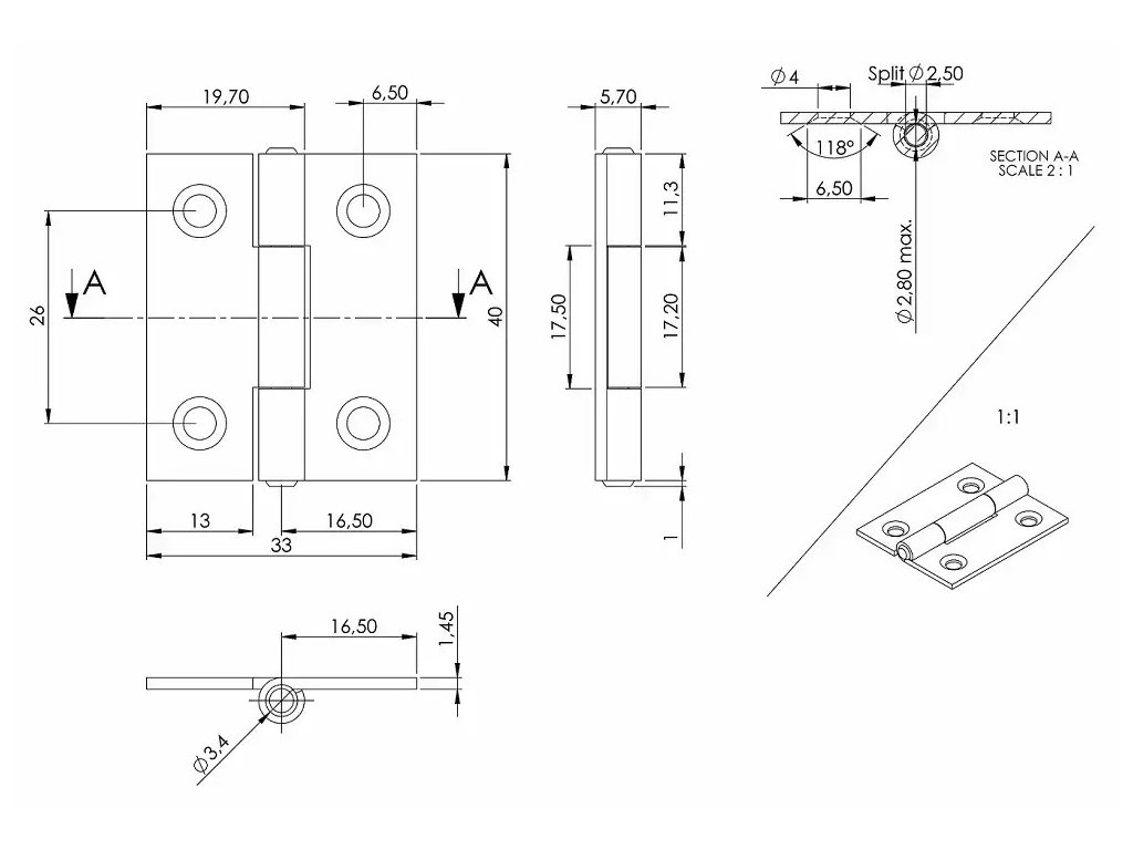 Záves (pánt) na priskrutkovanie - na prichytenie dvierok u nábytku, skriniek, králikární, debien atď.