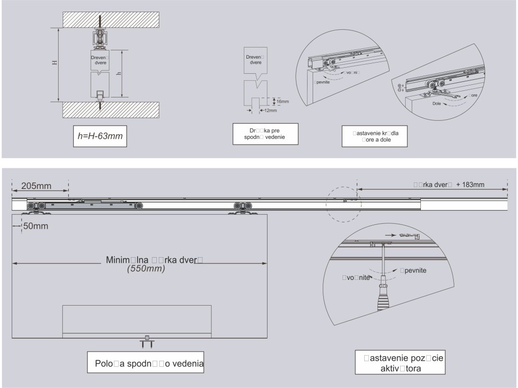 Posúvne kovanie SOFT 60kg, sada 200 cm s obojstranným tlmením
