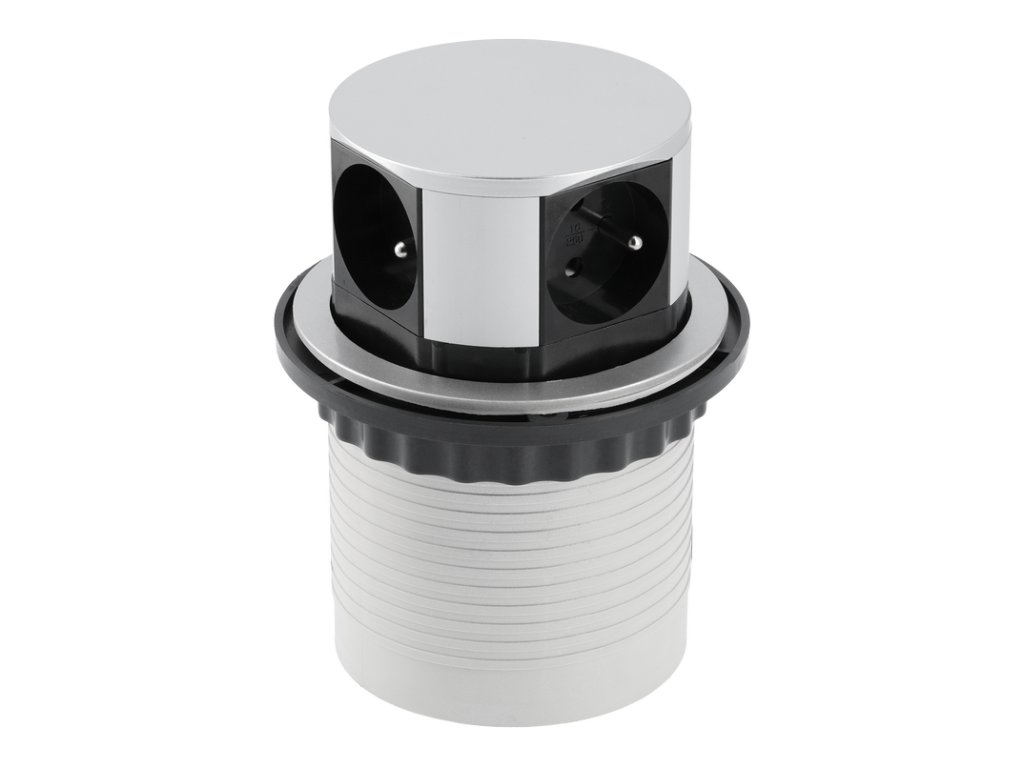 Kompaktný dizajn je ideálny, keď nie je miesto pre štandardný rozvodku. Jeho všestranné využitie umožňuje inštaláciu napríklad na kuchynskú linku alebo pracovný stôl. Predlžovací kábel vám umožní udržiavať v každom priestore poriadok. K dispozícii sú 3 napájacie zásuvky a 2 USB porty pre nabíjanie mobilných zariadení 5V/2,4A. Samotná inštalácia do pracovnej dosky je veľmi jednoduchá – stačí vyvŕtať otvor s priemerom 100 mm, vložiť predlžovací kábel a upevniť plastovým krúžkom. Produkt je dodávaný s 1,5 metrovým napájacím káblom.