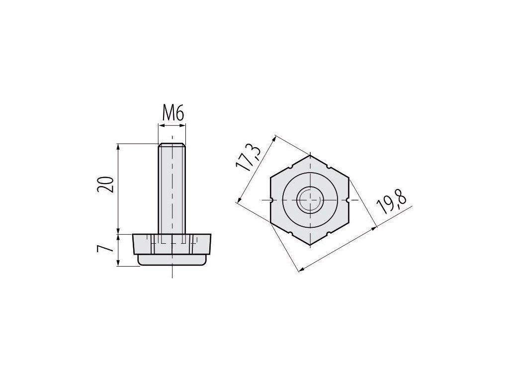 Rektifikačná pätka IKO 2 M6x27mm