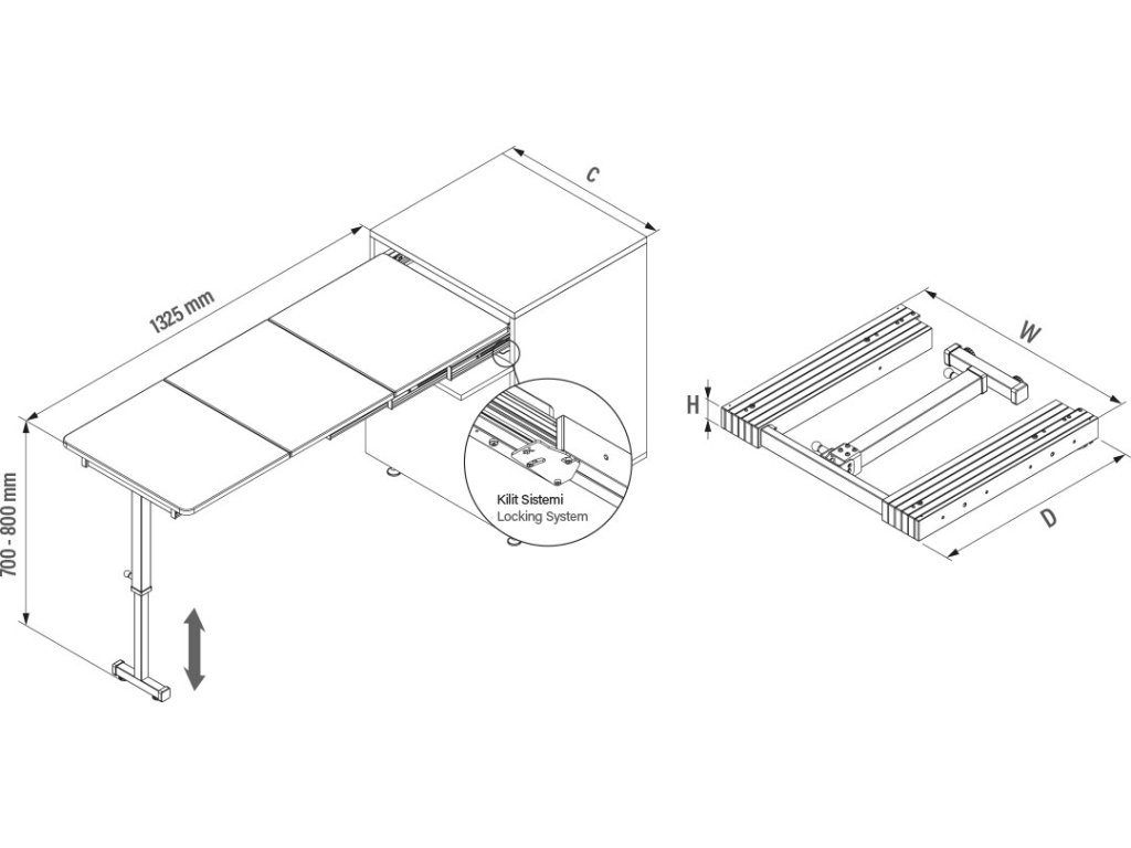 S-2146-W Kovanie na rozťahovací stôl s podperou 700mm biely