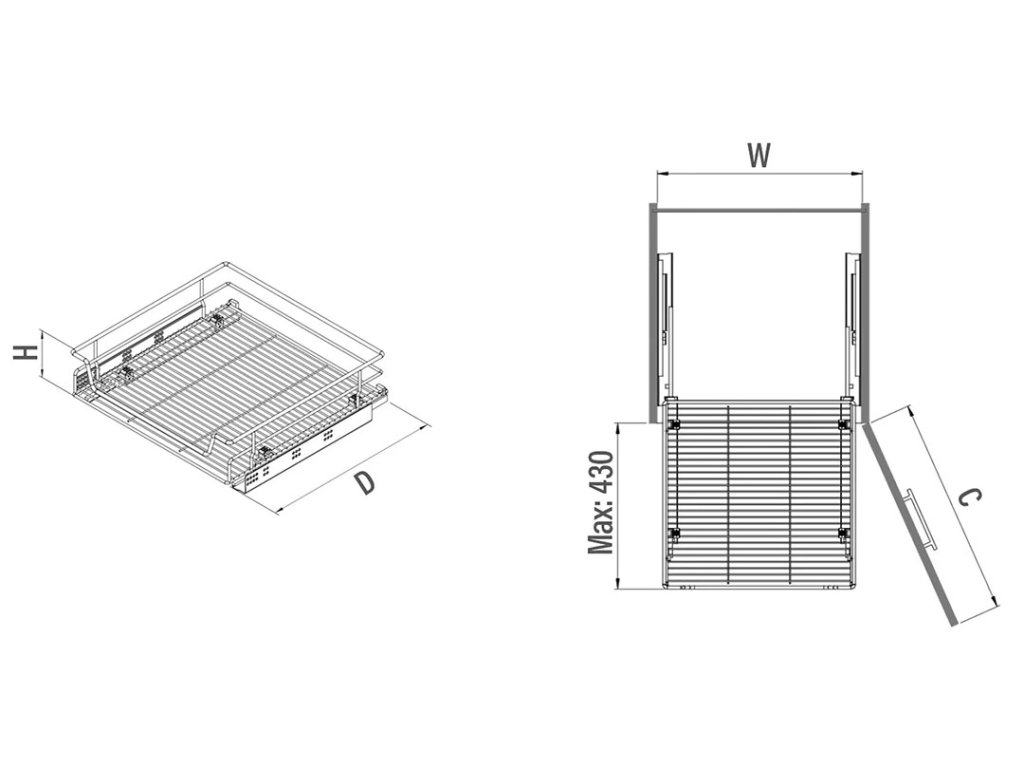 S-2339-C výsuvný kôš 900mm, chróm 860x482x145mm
