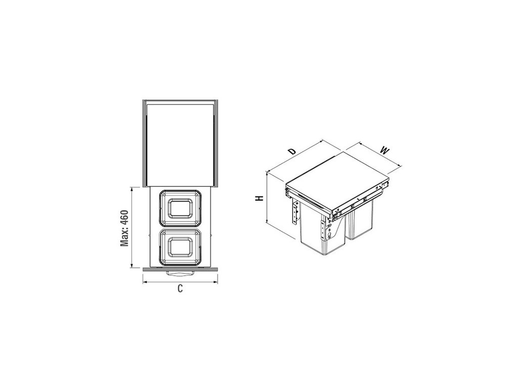 S-2383 Kôš na odpadky 500mm, 2x12+1L, použitý výsuv Blum Tandem