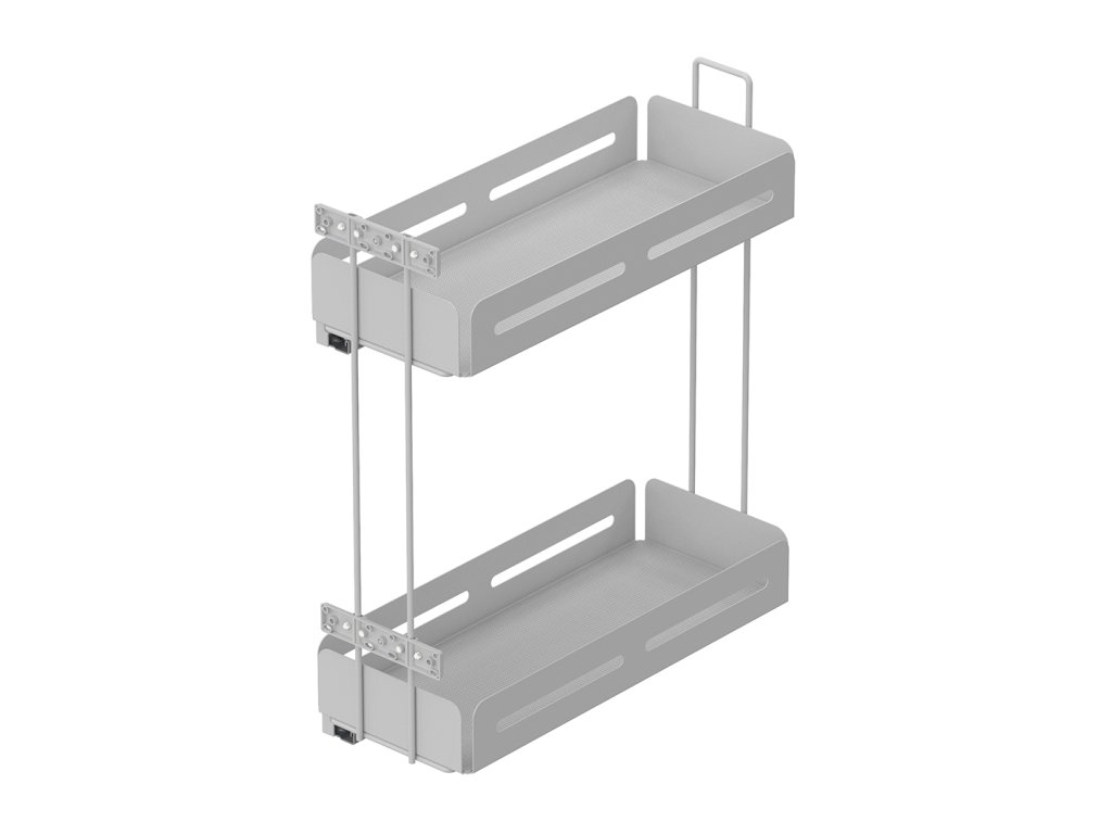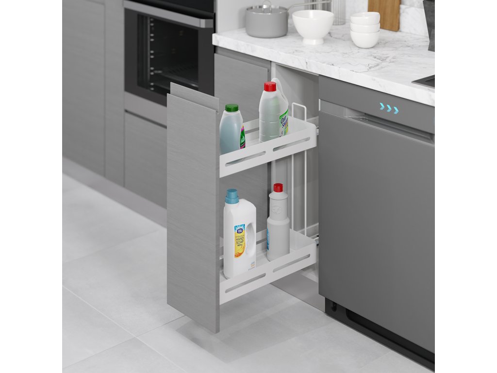 Nová séria vhodná do každej modernej kuchyne alebo kúpeľne. Tento výsuvný systém beží na koľajničkách BLUM s plným výsuvom.
