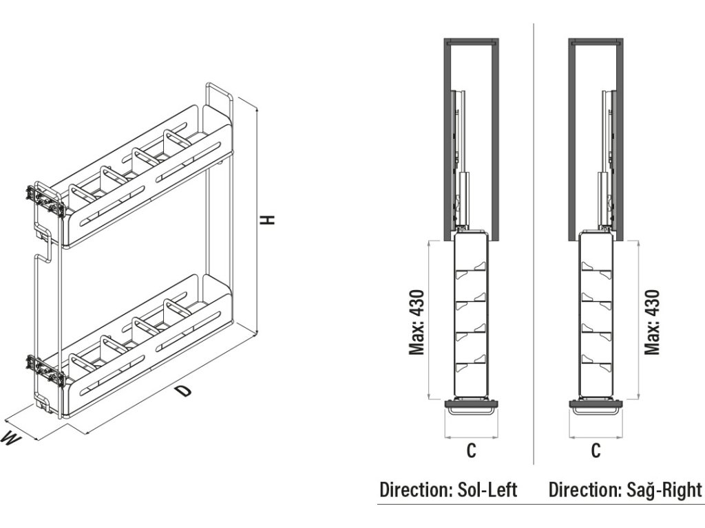 S-2662-UB-W, Výsuvný kôš UNIQUE BOX Biely, 150mm ĽAVÝ, Blum plnovýsuv