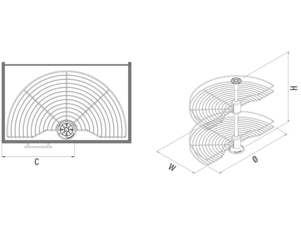 S-3011-C otočný 1/2 drôtený kôš, chróm 740mm