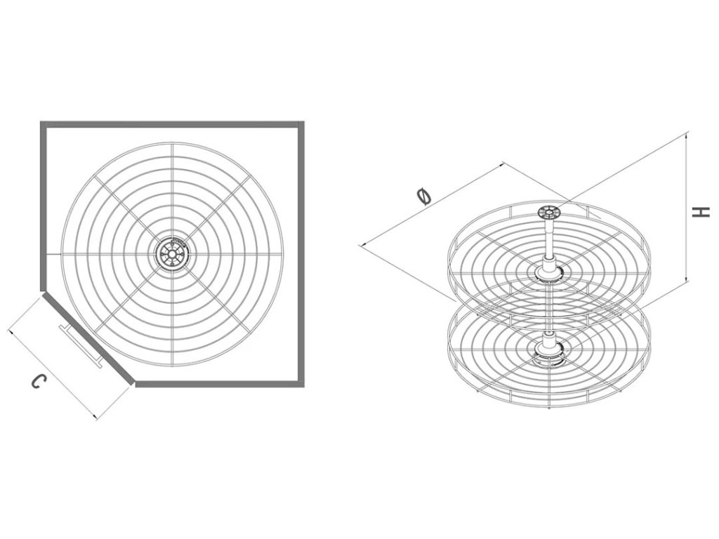 S-3034-C otočný 4/4 drôtený kôš chróm 750mm