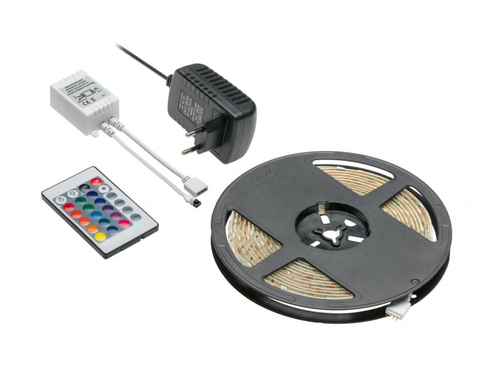 Balenie obsahuje kompletnú sadu pozostávajúcu z pásky, napájacieho zdroja, ovládača a diaľkového ovládača. Pás má diódy v troch farbách: červená, zelená a modrá – odtiaľ skratka RGB. Zmiešaním troch farieb môžeme získať takmer akúkoľvek odvodenú farbu vrátane bielej.