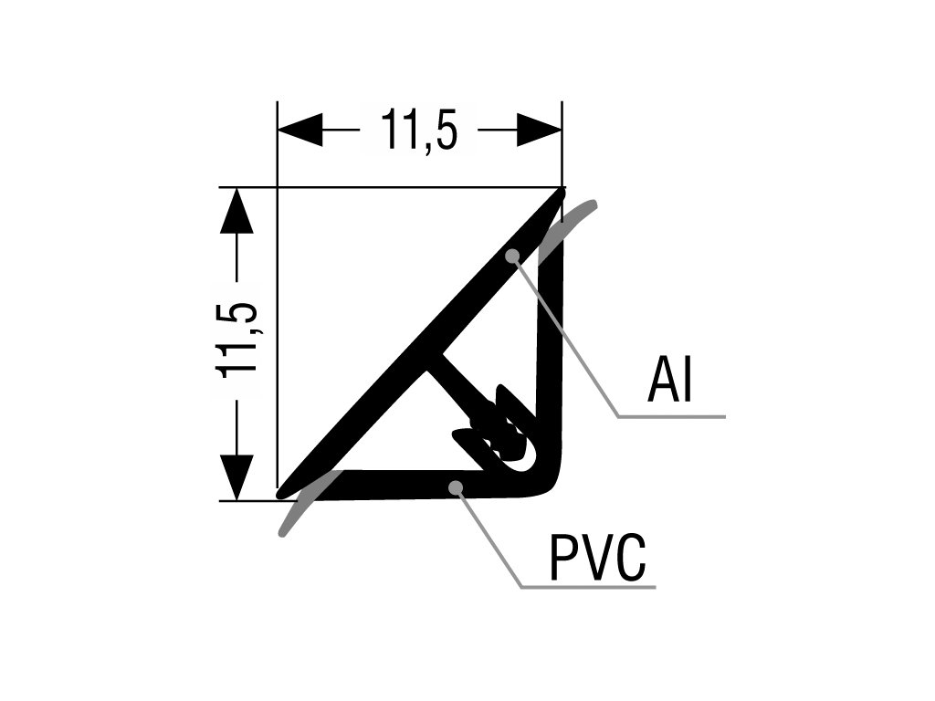 Tesniaca lišta L20 hliník brúsený 4M /T/Al