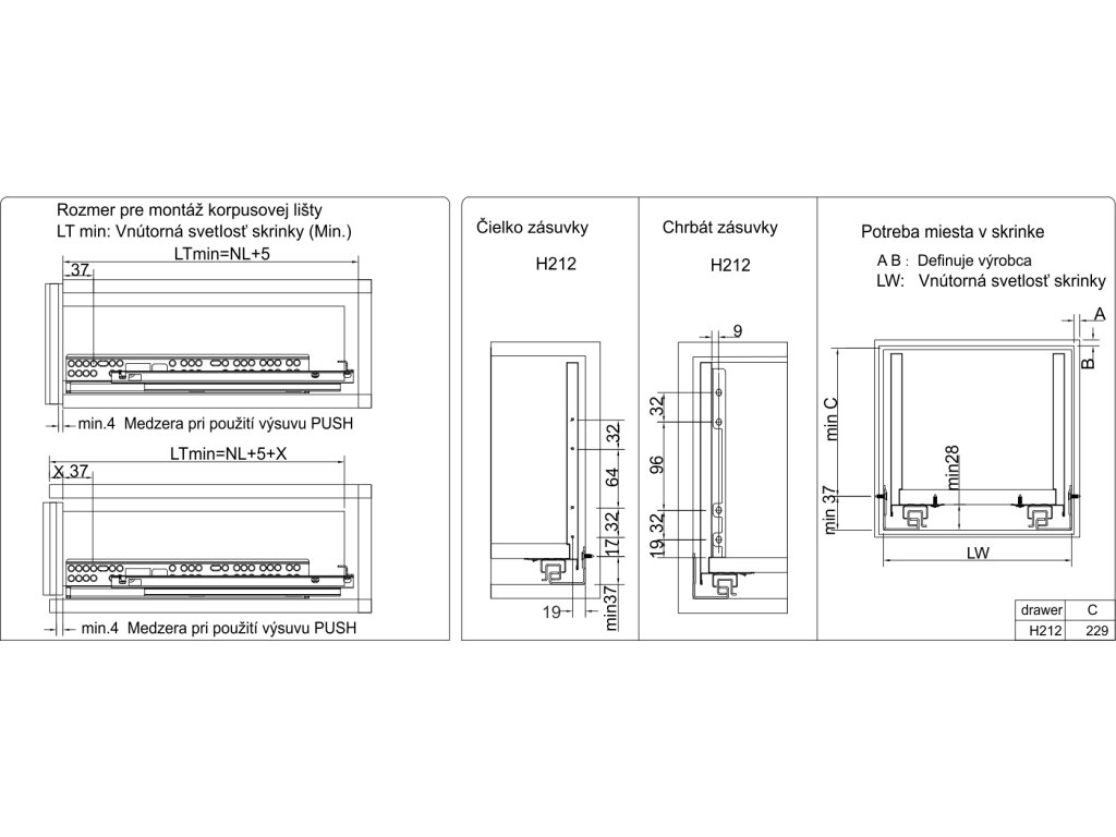 Hrúbka bočnice je 12,8mm. Nosnosť zásuvky je 35 kg.