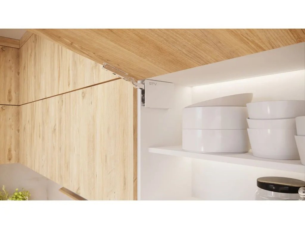 Mechanické kovanie, ktoré uľahčuje dizajn funkčných a moderných horných skriniek. Zaisťuje plynulý pohyb a odpruženie pri zatváraní skriniek. Umožňuje zastavenie klapky v akejkoľvek polohe nastavenej používateľom. Má až 3 typy nastavenia: ovládaciu silu, čas zatvárania a uhol otvorenia v rozsahu 90° až 105°. Výklop je možné použiť pre dvierka s výškou od 300 mm do 650 mm. Možnosť výberu až štyroch variantov sily pružiny prispôsobenej výške a hmotnosti čela umožňuje široké možnosti použitia. K dispozícii sú 3 farebné varianty krytky: biela, antracitová a čierna. Jednoduchá montáž, bez použitia ďalších šablón alebo meraní, kde konštrukcia výklopu je zároveň aj jeho montážnou šablónou.