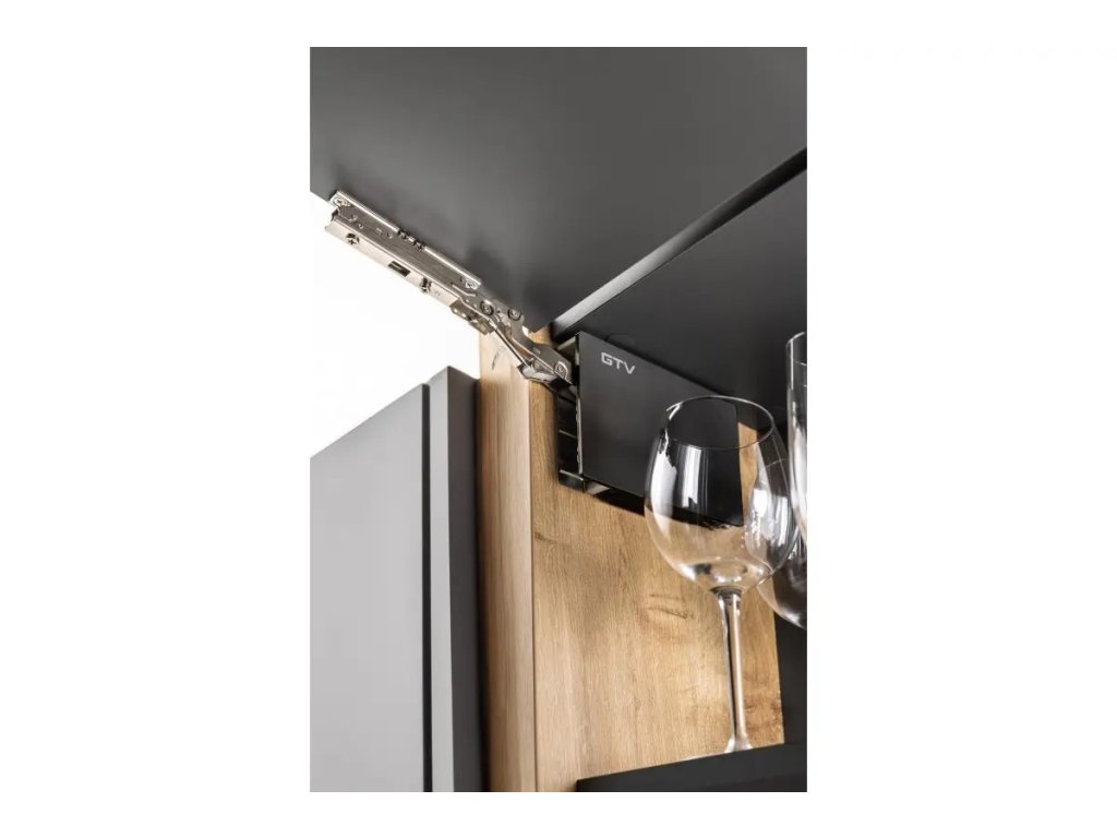 Mechanické kovanie, ktoré uľahčuje dizajn funkčných a moderných horných skriniek. Zaisťuje plynulý pohyb a odpruženie pri zatváraní skriniek. Umožňuje zastavenie klapky v akejkoľvek polohe nastavenej používateľom. Má až 3 typy nastavenia: ovládaciu silu, čas zatvárania a uhol otvorenia v rozsahu 90° až 105°. Výklop je možné použiť pre dvierka s výškou od 350 mm do 650 mm. Možnosť výberu až štyroch variantov sily pružiny prispôsobenej výške a hmotnosti čela umožňuje široké možnosti použitia. K dispozícii sú 3 farebné varianty krytky: biela, antracitová a čierna. Jednoduchá montáž, bez použitia ďalších šablón alebo meraní, kde konštrukcia výklopu je zároveň aj jeho montážnou šablónou.