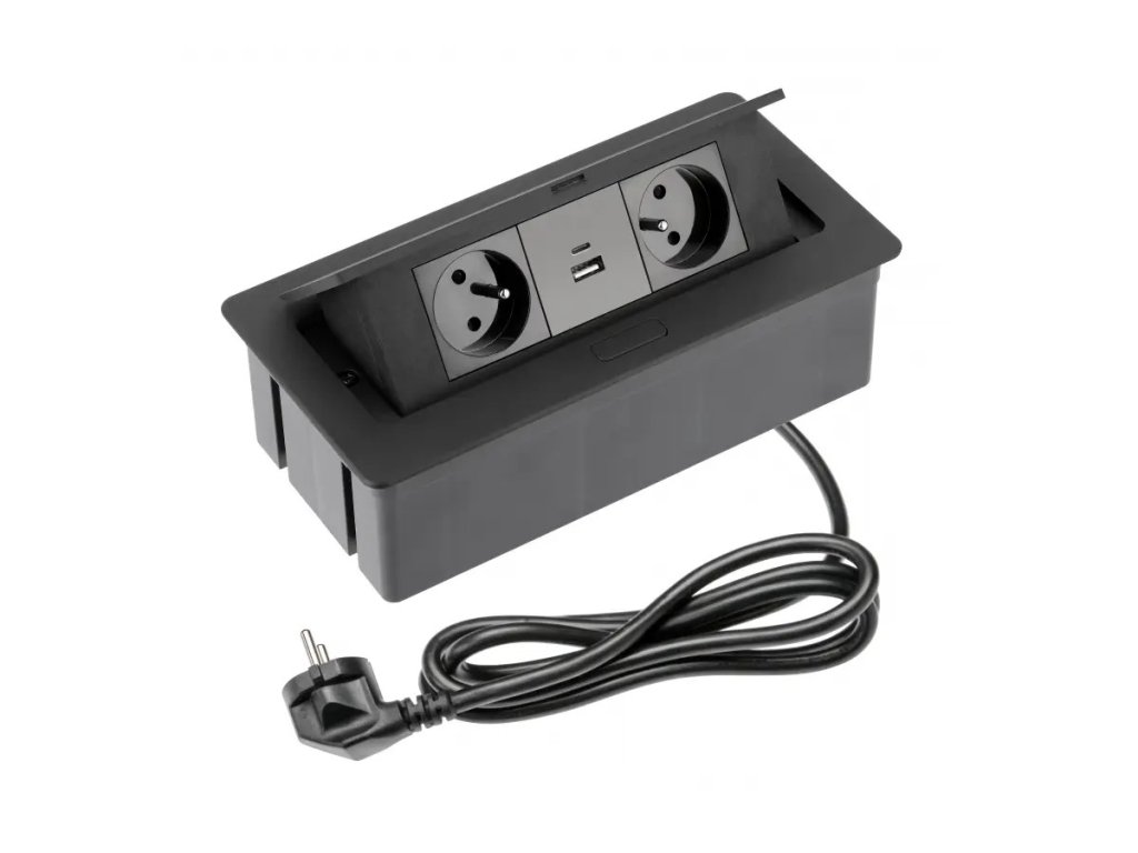 Výklopná predlžovačka čierna 2x220V+ USB A+C