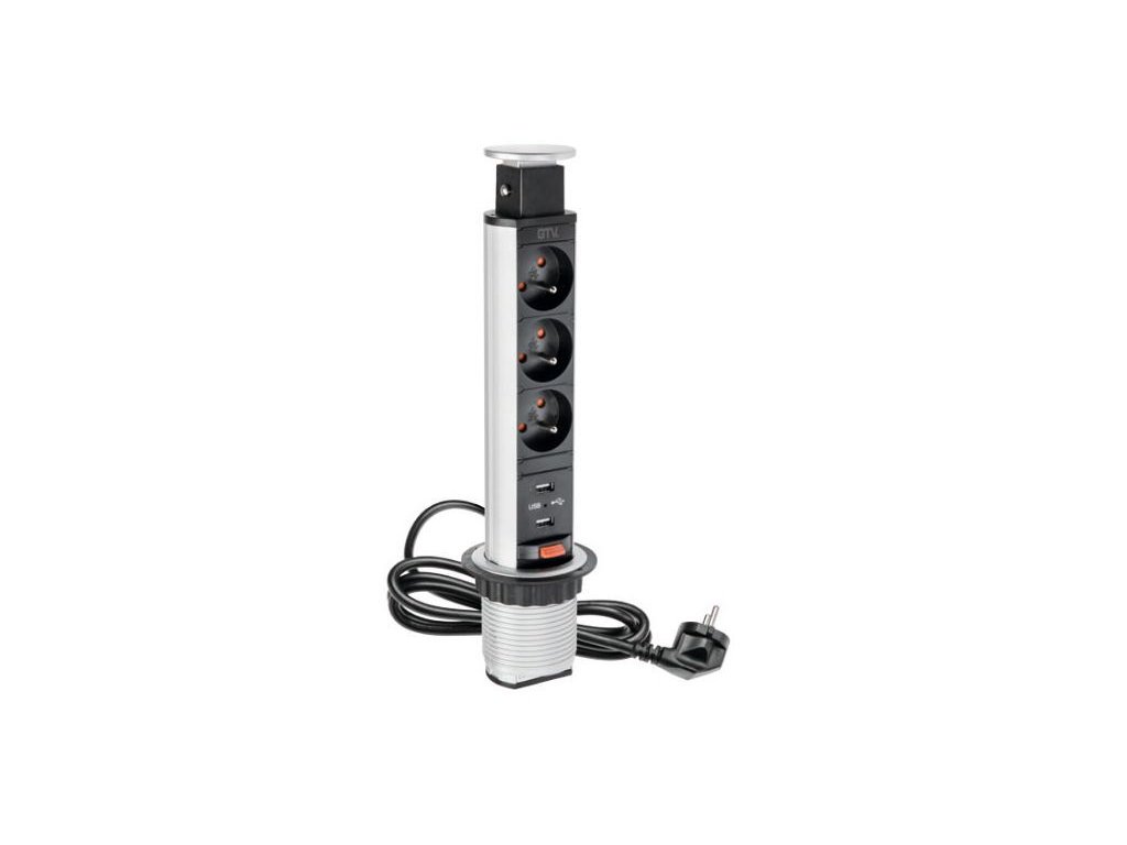 Výsuvná nábytková zásuvka je jedným z najpopulárnejších riešení na trhu. Je prispôsobený malým priestorom – malé písacie stoly, stolíky, kuchynské linky. Po vysunutí máme k dispozícii tri napájacie zásuvky. Zásuvka je ukončená estetickým krytom. Dostupné v dvoch univerzálnych farbách: čiernej a striebornej. Úspora miesta – keď skončíte, môžete ho jednoducho schovať do pracovnej dosky. Malý rozmer - pre montáž stačí vyvŕtať otvor s priemerom len 60 mm. Jednoduchá inštalácia - montáž do pracovnej dosky sa vykonáva utiahnutím plastovej matice. Zariadenie je dodávané so 150 cm dlhým napájacím káblom.