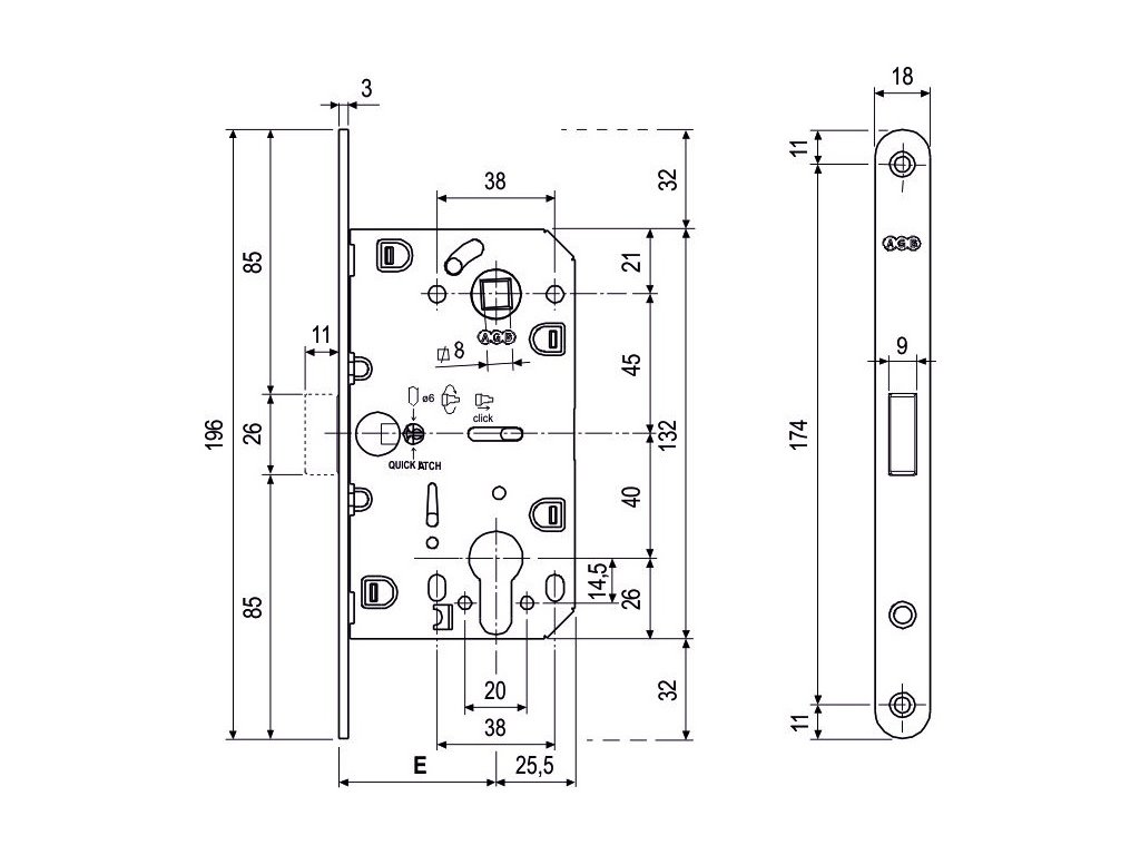 Zámok magneticky Polaris vložka, 50/85/18 nikel