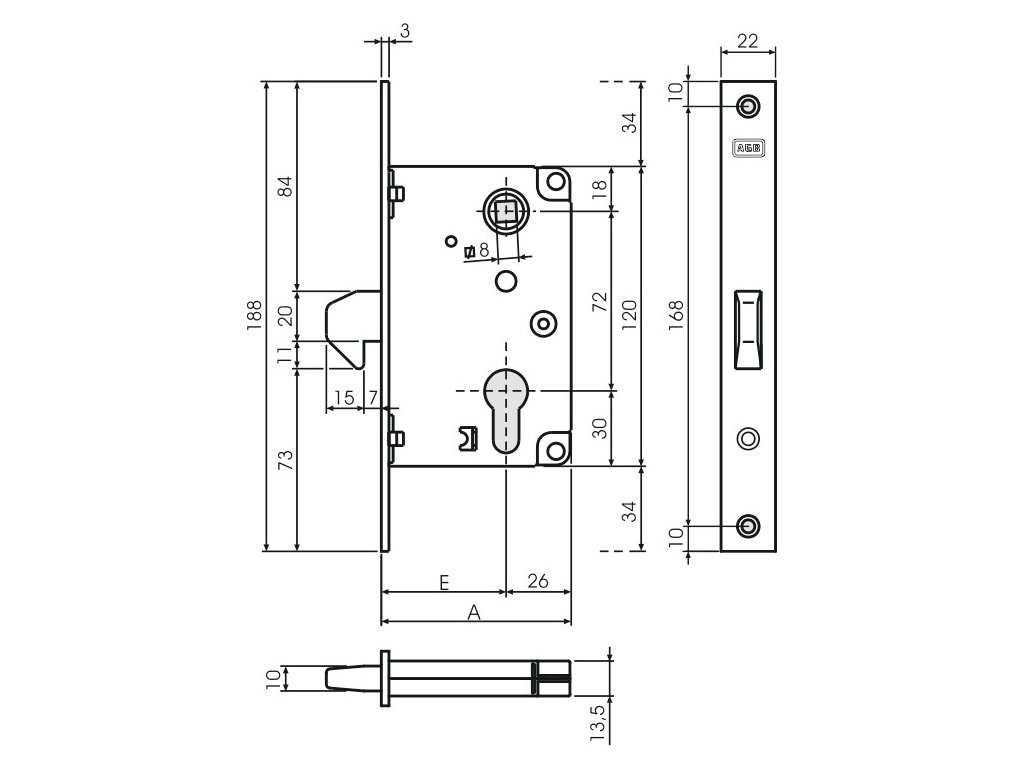 Zámok na posuvné dvere vložkový š-76mm, biely zinok