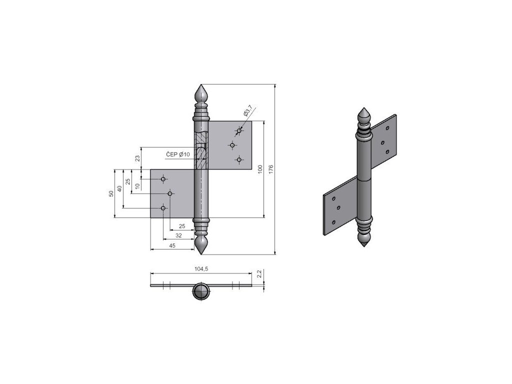 Záves dverový UR 100 Ľ,mosadz