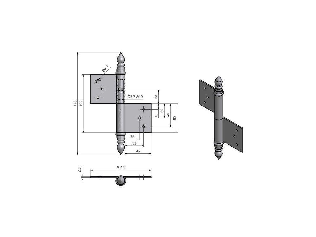 Záves dverový UR 100 P,mosadz